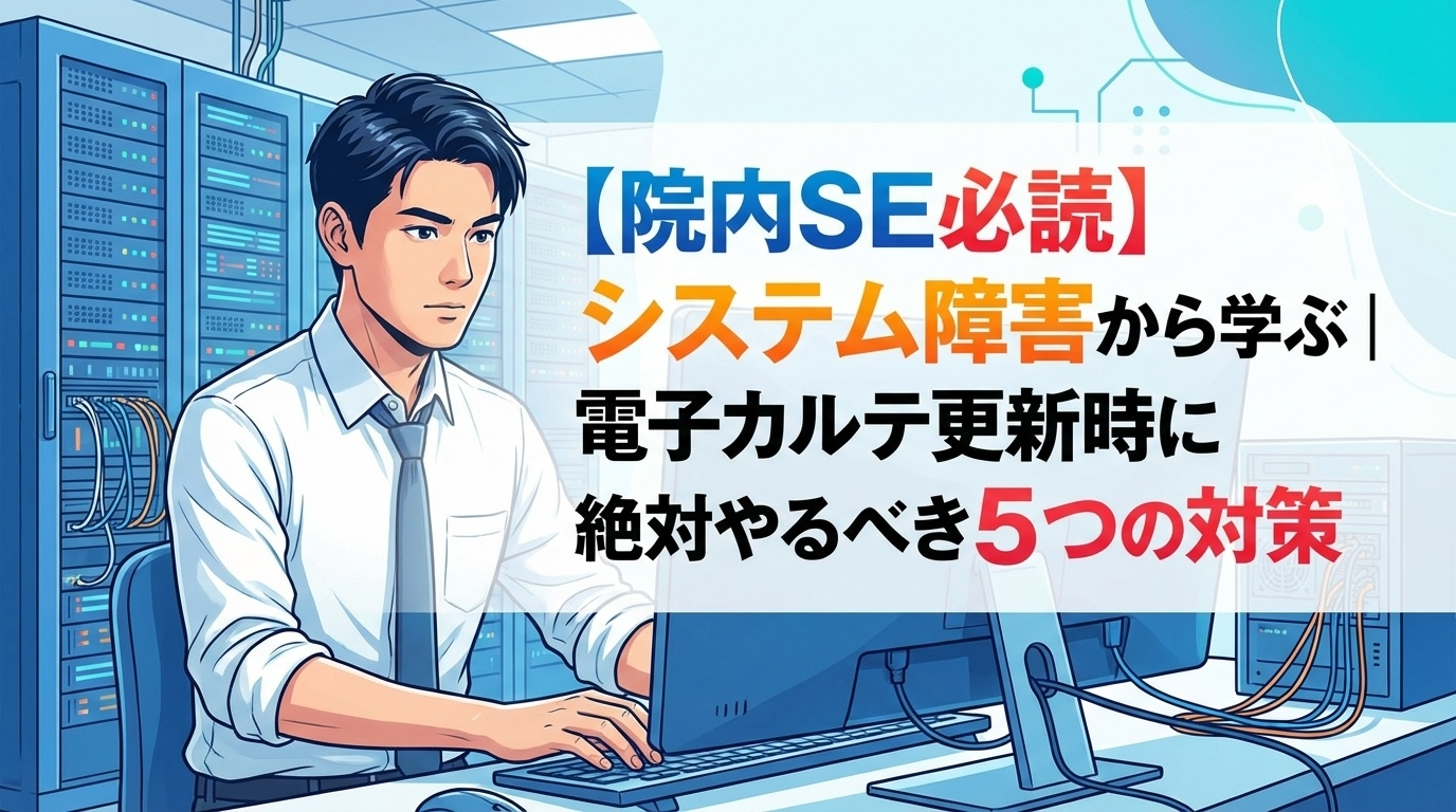 2026年1月、神戸大病院で電子カルテ更新時にシステム障害が発生し数百人が滞留。院内SEが学ぶべき5つの実務対策を徹底解説。段階的移行、ロールバック計画、会計システムの優先検証、ピークタイム対応、ベンダー契約の見直しなど、明日から実践できる具体策を現場目線で紹介。「うちの病院は大丈夫」と思った瞬間が危ない。システム更新の失敗事例から学ぶ、患者を守る院内SEの心得。