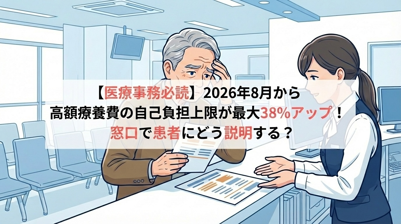 2026年8月から高額療養費の自己負担上限が最大38%引き上げ。医療事務の窓口対応が変わる。患者からのよくある質問5選と模範回答、事前準備のポイントを徹底解説。制度改正の背景も紹介。